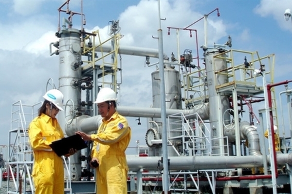 PetroVietnam Gas engineers at a facility. The company shares rose total 2.1 per cent last week. — Photo vietnamfinance.vn